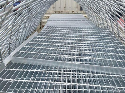 熱浸鋅鋼格板制作工藝:鋼格板是由負載扁鋼和橫桿按一定間距經緯排列,在高壓電阻焊機上焊接而成原板,經切割、切口、開孔、包邊等工序深加工而成客戶要求的成品。
